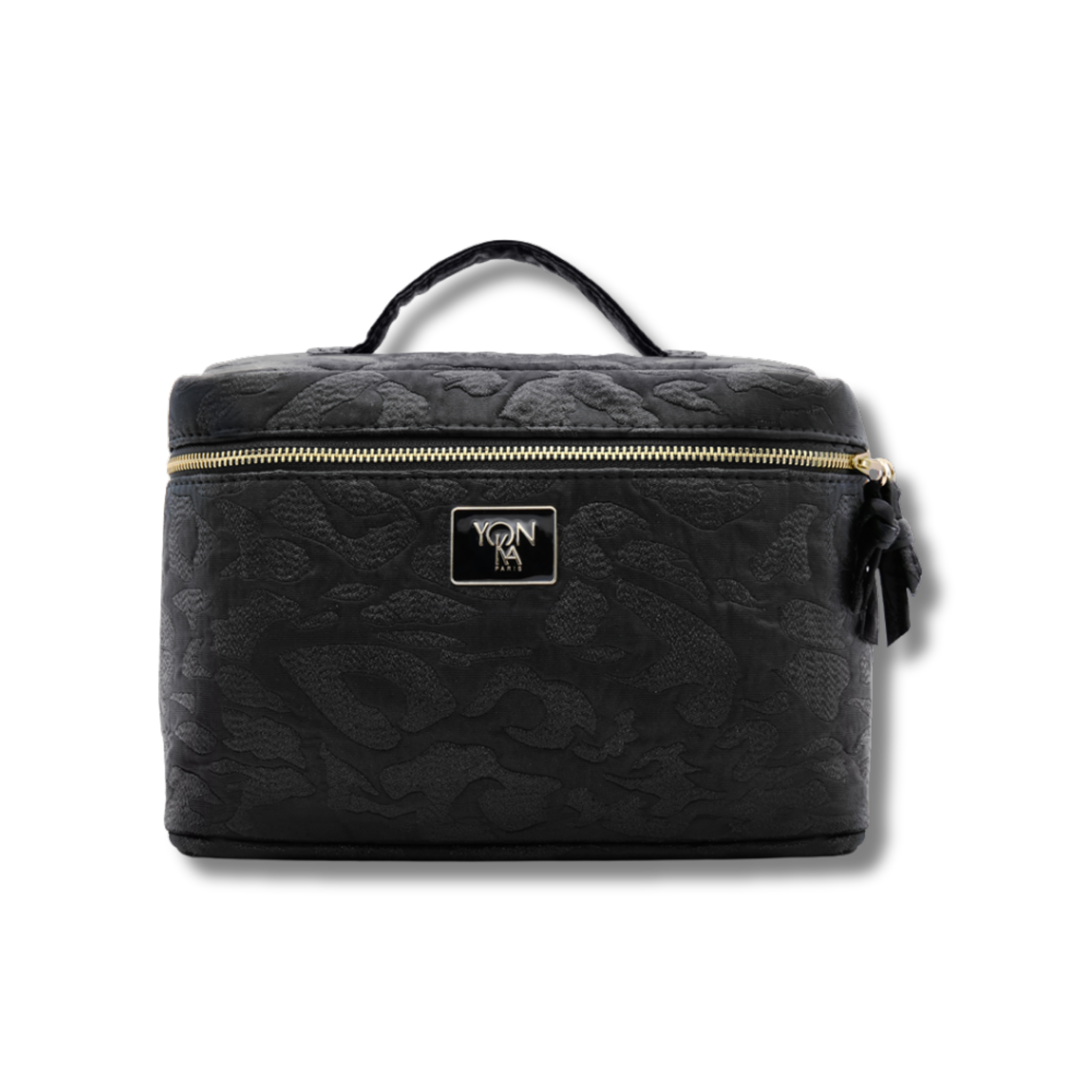 Keep your skincare and makeup essentials perfectly organised with this elegant black beauty bag. Designed with a structured silhouette and embossed textured finish, this stylish cosmetic case combines practicality with a sleek, professional look.